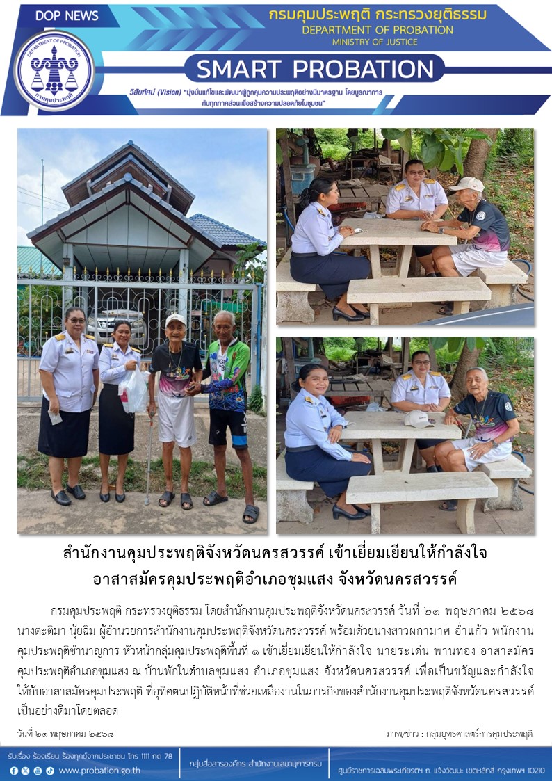 สำนักงานคุมประพฤติจังหวัดนครสวรรค์ เข้าเยี่ยมเยียนให้กำลังใจ อาสาสมัครคุมประพฤติอำเภอชุมแสง จังหวัดนครสวรรค์