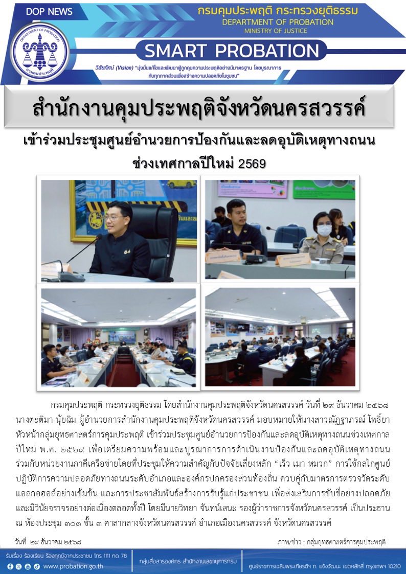 สำนักงานคุมประพฤติจังหวัดนครสวรรค์ เข้าร่วมประชุมศูนย์อำนวยการป้องกันและลดอุบัติเหตุทางถนนช่วงเทศกาลปีใหม่ พ.ศ. 2569