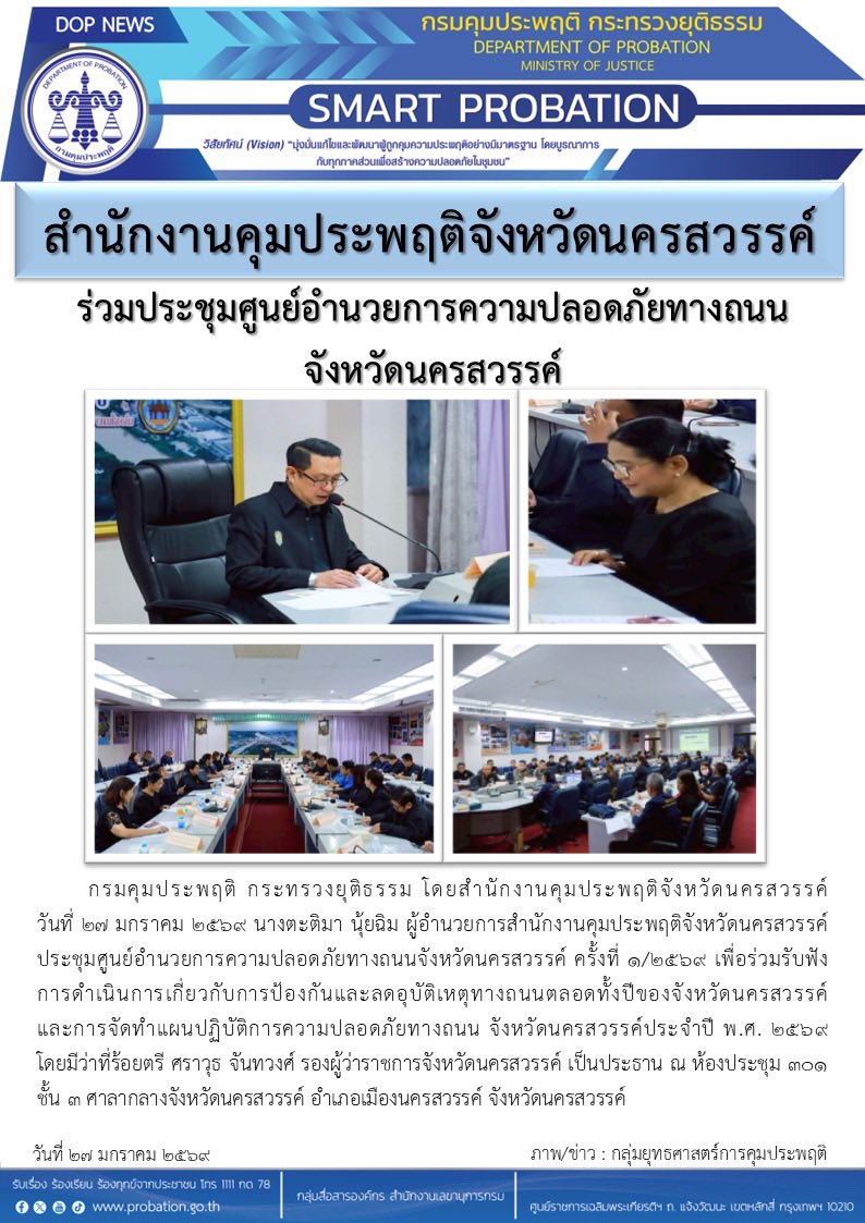 สำนักงานคุมประพฤติจังหวัดนครสวรรค์ ร่วมประชุมศูนย์อำนวยการความปลอดภัยทางถนนจังหวัดนครสวรรค์ ครั้งที่ 1/2569